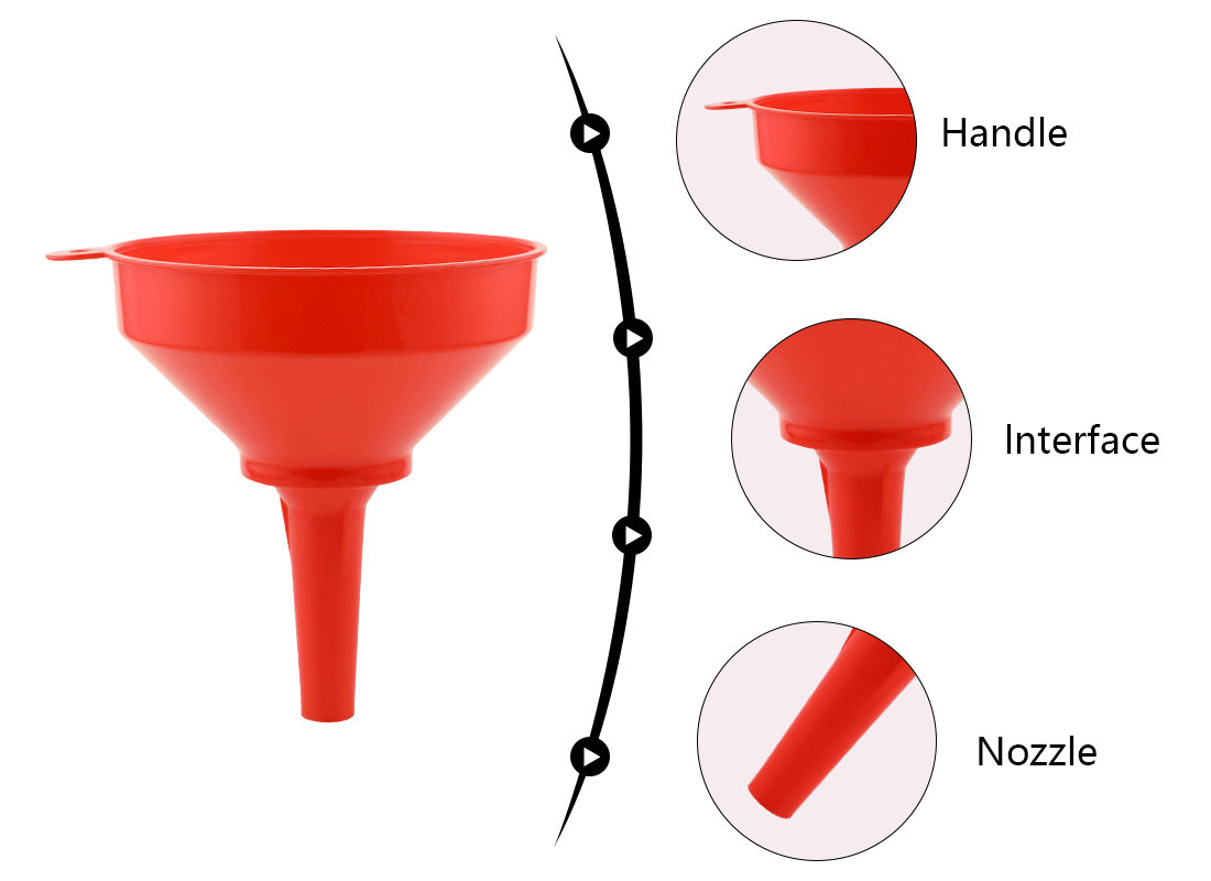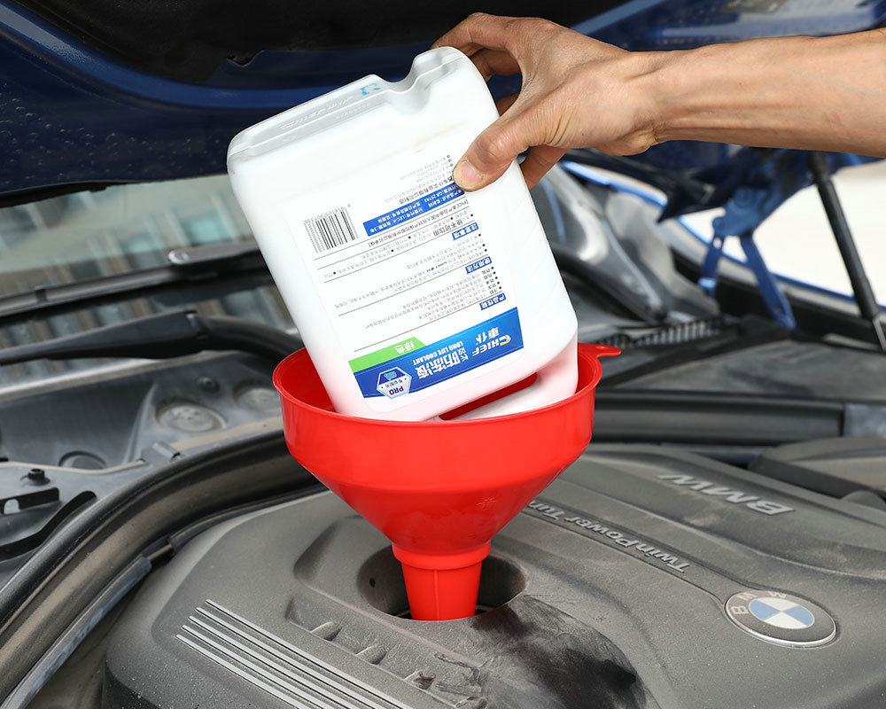 Compatible with Petrol and Diesel.The strainer can be taken out. 5.9'funnel mouth Diameter funnel plastic with tilter.