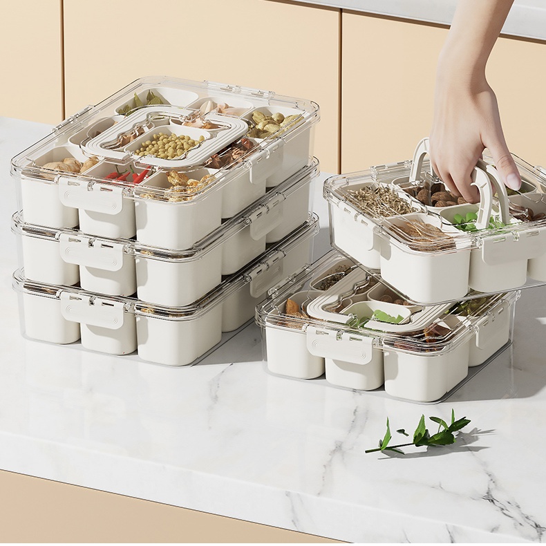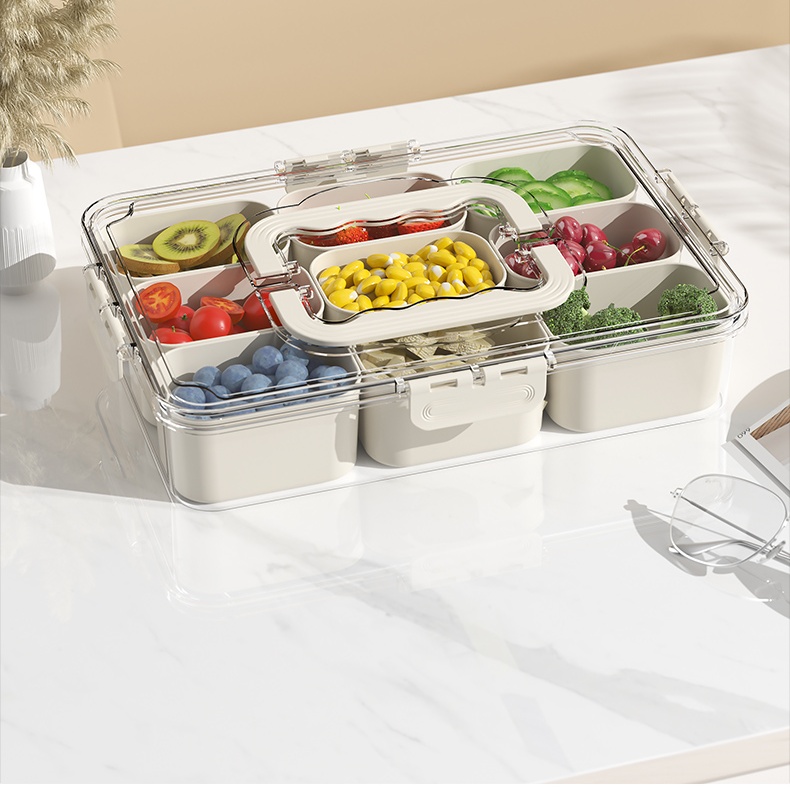 Designed for the outdoor enthusiast, custom camping divider snack storage boxes are made of durable, environmentally friendly materials, lightweight and waterproof to ensure snacks stay fresh during camping. Its flexible partition design allows users to freely combine according to individual needs, convenient classification and storage of various snacks, such as nuts, energy bars and dried fruits, to avoid mixing. The transparent window allows you to view the content at any time, saving you the time to find. Whether you're picnicking in the mountains or camping by the lake, this custom storage box adds convenience and fun to your adventure, allowing you to enjoy nature while enjoying delicious snacks at any time.