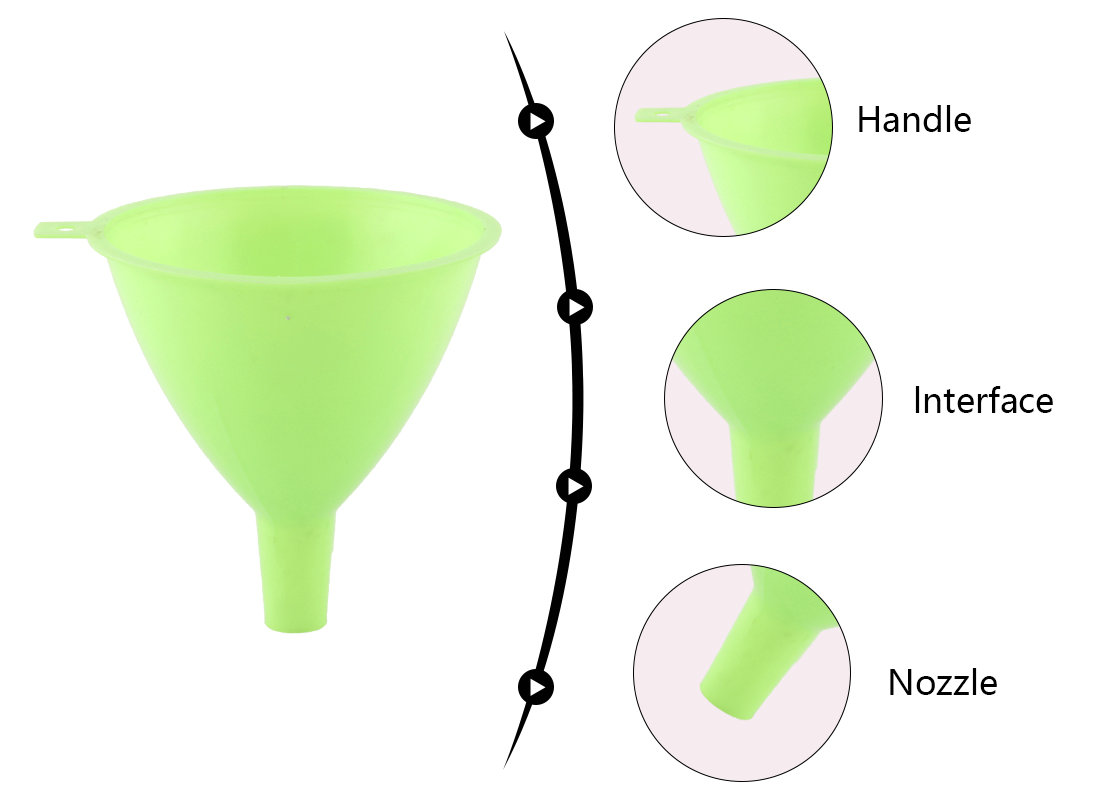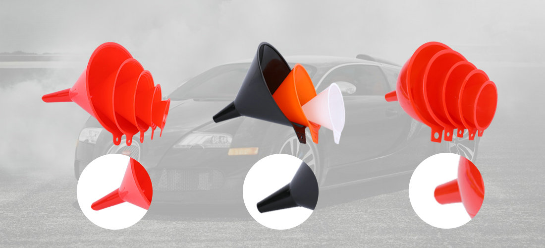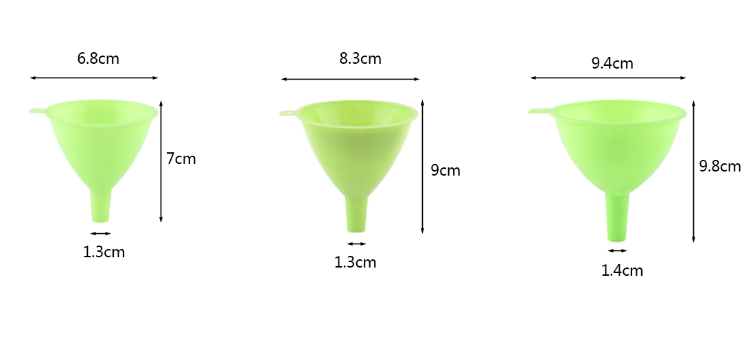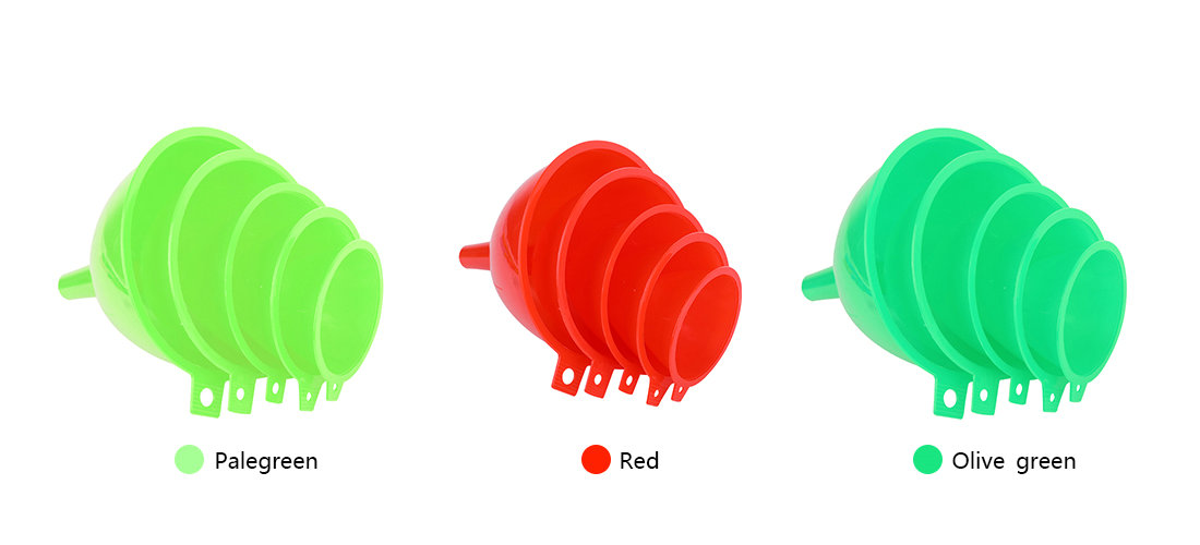 5 piece plastic funnel, used in kitchen etc.Can be used for irrigation oil, irrigation water, juice irrigation drinks.6.8-8.3-9.4 -11-12.5 cm, different sizes for daily use in families.Small caliber is suitable for all kinds of bottles and jars commonly used in family.5 sizes can be purchased together, or any one or several sizes can be selected.High quality, can be customized packaging, color.Logo can be printed.