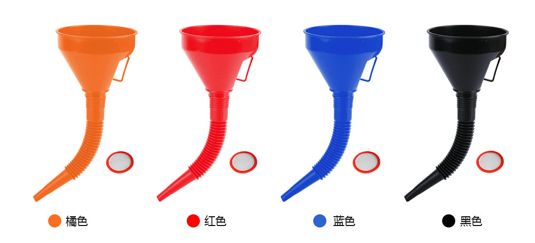 QM启明黑色14.5cm加长软管可折叠车用长塑料漏斗