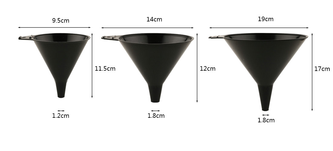 聚丙烯塑料实用漏斗套件(3件)经济型塑料传输漏斗套件。OEM受到热烈欢迎。